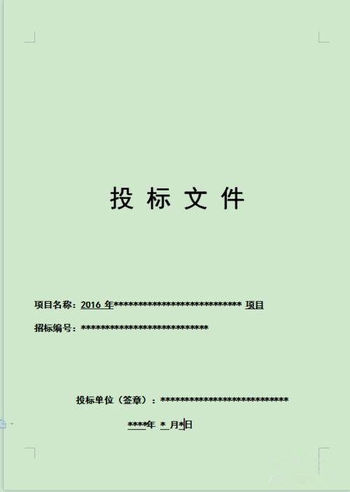 第一步:制作投标文件 的封面,如果招标文件有提供格式即按照其格式来,如果没有格式可以自己想一个一般的投标文件格式,比如我这边的一个例子:如下 图