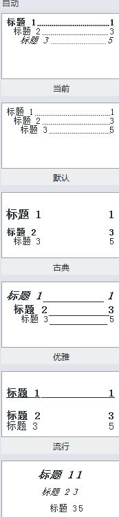 这里有很多种目录形式,可以选择一个自己喜欢的,单击鼠标即可完成目录的插入