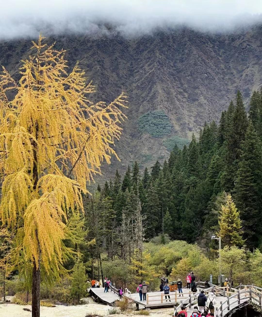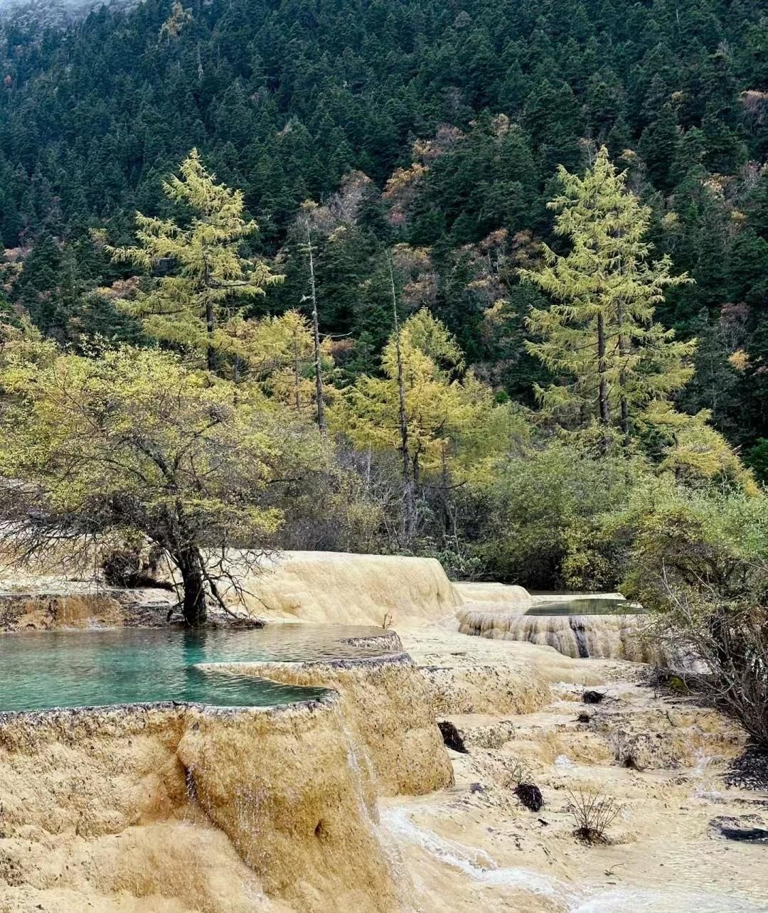 观光车下车顺着人流一直走750米才到五彩池,大部分是爬楼梯的路,高原上真的累到喘不过气,看完五彩池下来原路返回去坐观光车下山