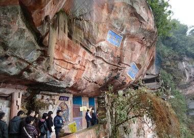 悬岩绝壁上的石窟寺庙,洞上是莽莽的竹林,洞下是竹海大峡谷
