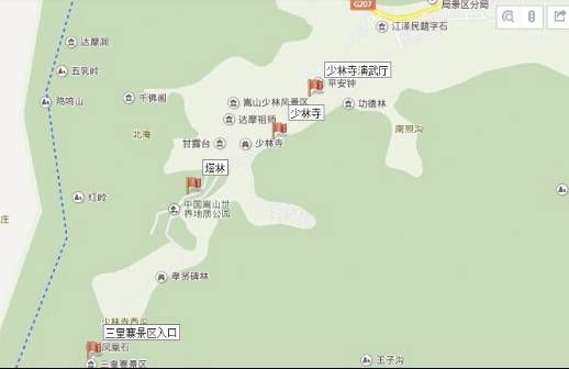 三皇寨→塔林→少林寺庙→武术表演(这是一条很完整的穿越路线,适合体力旺盛的朋友)