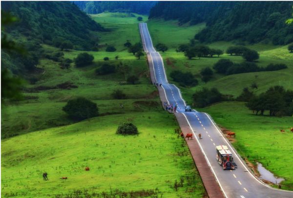 5、灰千梁子。灰千梁子地处武陵山脉西翼,重庆黔江区东部边缘,喀斯特地貌,岩溶发育,岭脊平缓、岩陡交错,千峰突兀,沟壑纵横,其北端直距黔江城16公里,咸丰县城33公里,南端直距酉阳县城36公里,面积之广为黔江一绝。