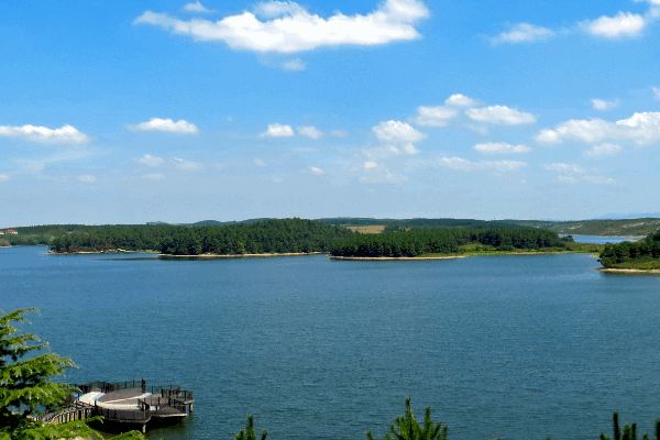 又名黄栗树水库,位于城西20千米。湖泊面积16.5平方千米。水库是以灌溉、防洪为主的综合利用的多年调节水库,是安徽省十大水库之一,南京都市圈内最大的淡水湖泊。主要景点有湖心岛、黄栗树新村等。
