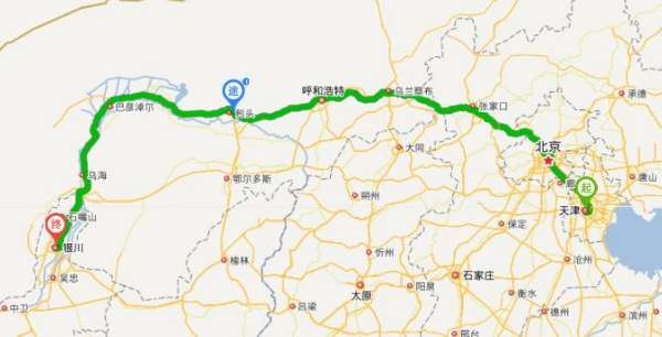 天津到包头到银川自驾游路线:1337.9公里,15小时22分钟