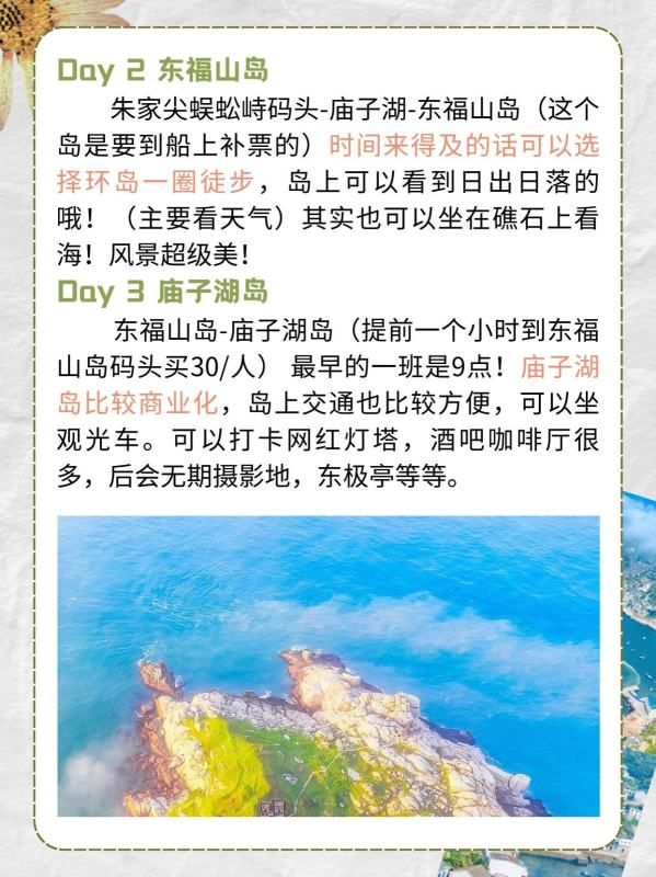 东福山岛-庙子湖岛(提前一个小时到东福山岛码头买30/人) 最早的一班是9点!庙子湖岛比较商业化,岛上交通也比较方便,可以坐观光车。可以打卡网红灯塔,酒吧咖啡厅很多,后会无期摄影地,东极亭等等。