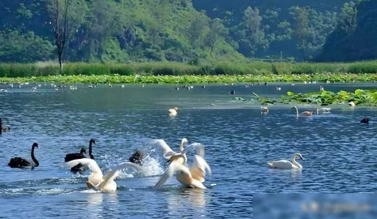 天鹅湖是普者黑的一颗瑰宝,湖区内生态丰富,候鸟们自由翱翔,呈现出一幅大自然和谐相处的画面。乘坐电瓶船在湖中徜徉,感受万鸟齐飞、天鹅荡漾的奇景,仿佛进入了人与自然的和谐境界。