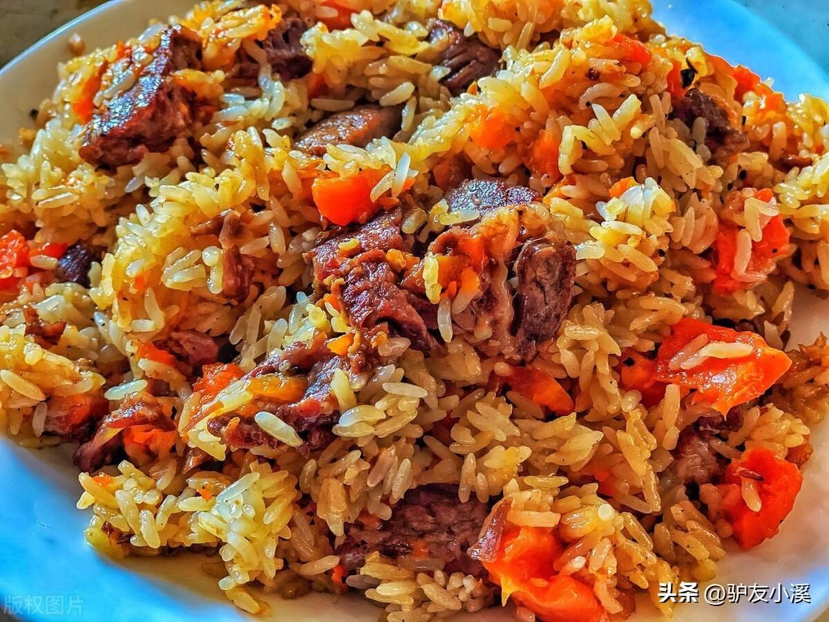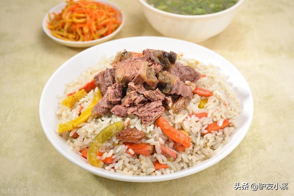 - 抓饭: 类似于拉面, 但口感更软滑顺口; 搭配上微辣口味或者酸奶都十分可口。