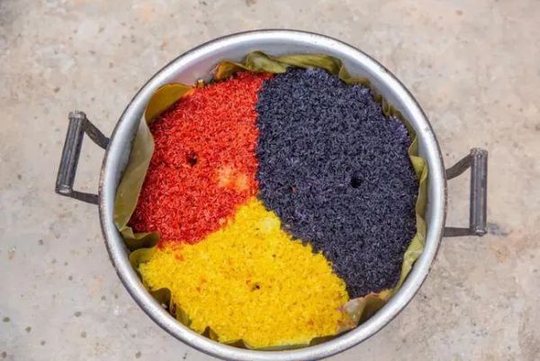 第1次去海南旅游,一定要品尝一下海南中部地区特有的苗家三色饭,因为海南中部山区是苗族人集中居住的地方,而三色饭是苗族的特色传统小吃,特别是在每年3月3前后,当地居民都会制作好吃的三色饭,做好以后的三色饭用绿叶烘托,三色搭配特别漂亮,吃起来口感滋味也特别诱人。