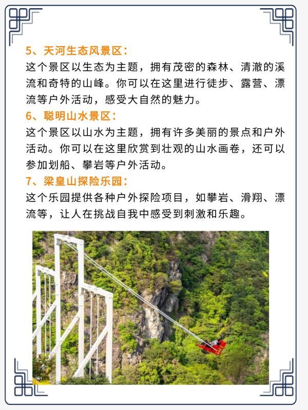 这个景区以山水为主题,拥有许多美丽的景点和户外活动。你可以在这里欣赏到壮观的山水画卷,还可以参加划船、攀岩等户外活动。
