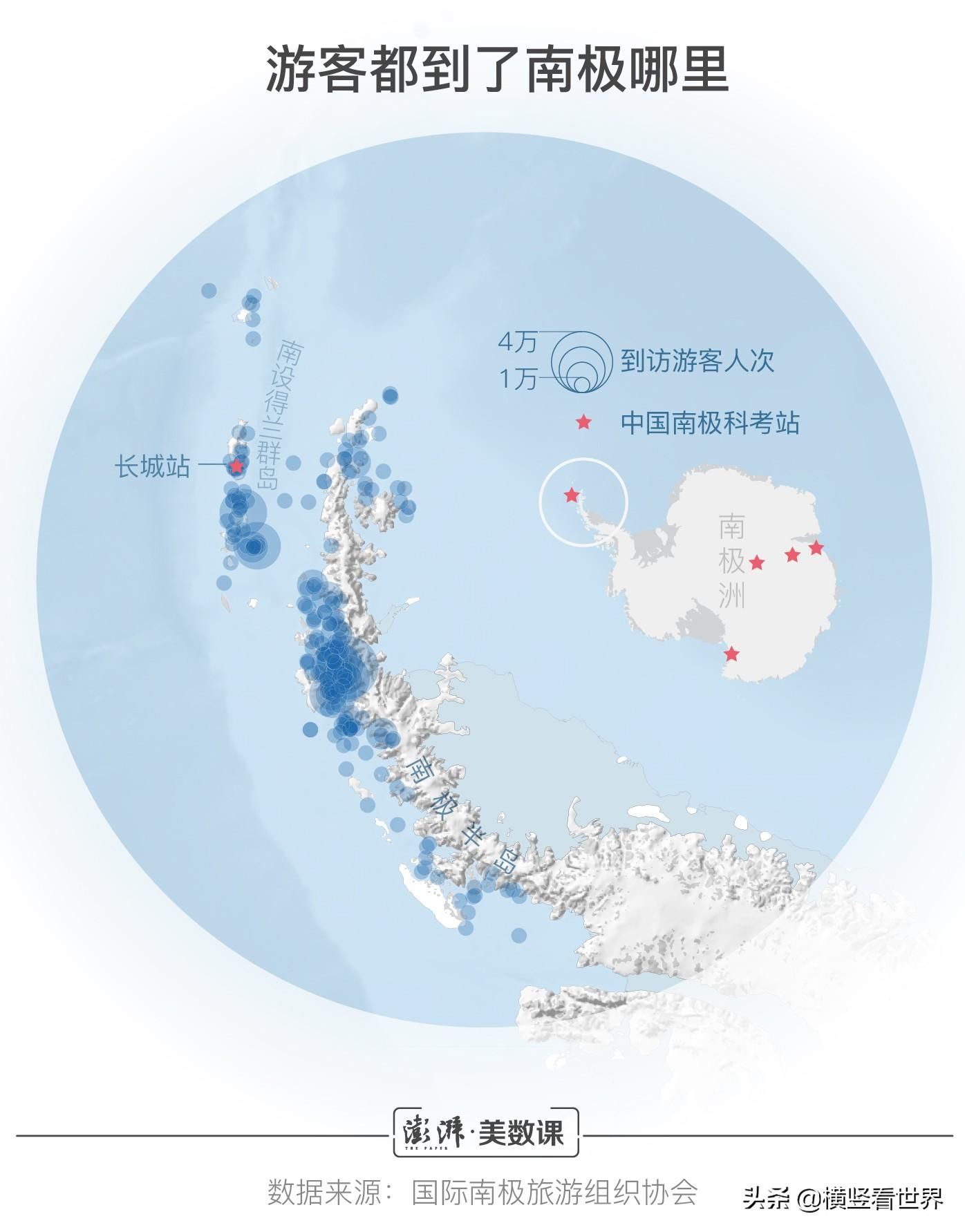 根据IAATO的规定,游客可以登陆的岛屿基本集中在靠近南美洲的南设得兰群岛和南极半岛。其中,南设得兰群岛有乔治王岛、利文斯顿岛等许多知名岛屿,长城站就设在乔治王岛。近年来,长城站几乎成了中国游客必到的"景点"。根据IAATO发布的数据,2018年的南极旅游季,长城站共接待了8370人次的游客。