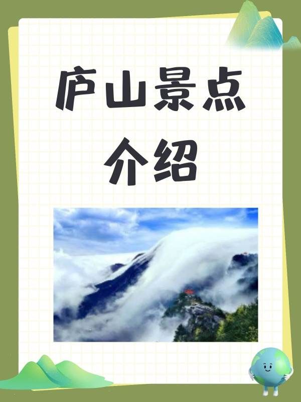庐山是中国著名的风景名胜区之一,拥有丰富的自然景观和人文历史遗迹。以下是一些值得打卡的旅游景点: