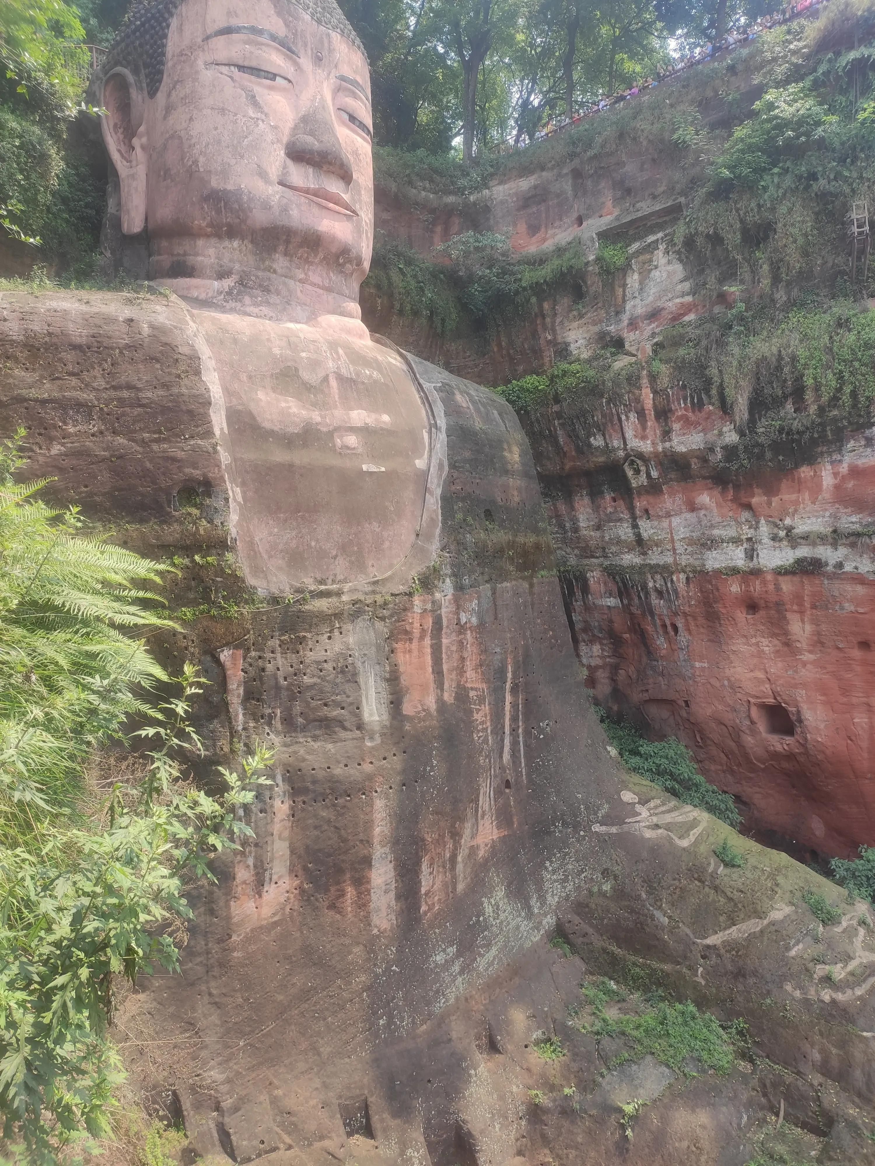 历经艰险,到达大佛足下。你终于可以目睹大佛尊容。只见大佛慈眉善目,面对大江,双手扰膝,安祥端坐。多么神奇的大佛,历经千载,风韵依旧。见了他,心中烦恼一扫而光。阵阵欢乐,从心底涌出。心中只有一个字:值!我们不禁感叹:要见大佛,还真如唐僧西游,非经九九八十一难不可。