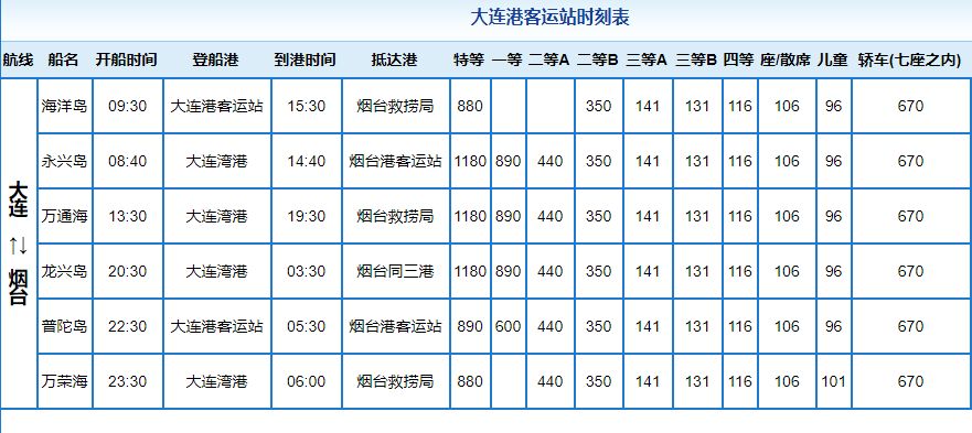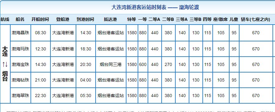 可以看到大连到烟台船次还是很多的,但要注意的是始发地是不同的,千万不要找错地方了,而且到达烟台也是有不同的港口。很多人会选择晚上的轮次,这样路上就不会耽误时间了,但也要做好一晚上休息不好的准备。