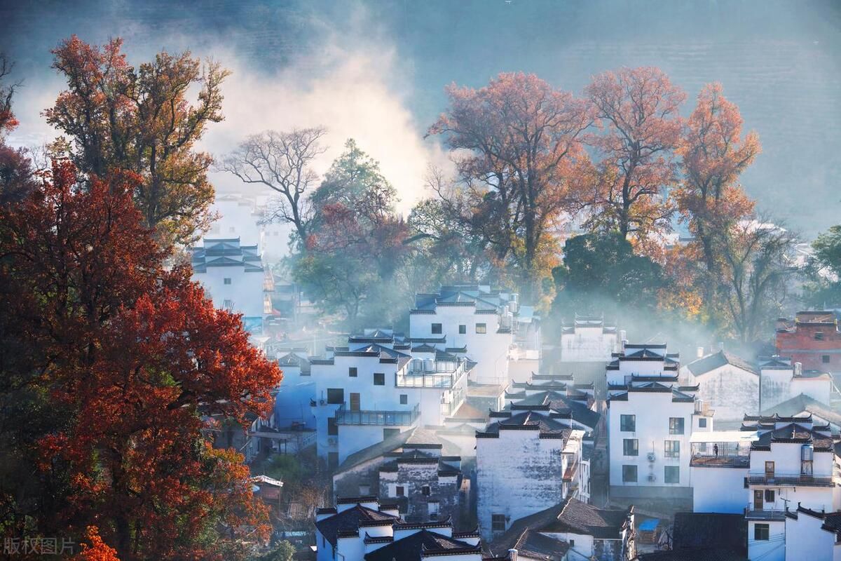 江南水乡的婺源秋景宜人,红叶点缀着古村落,是一场静谧的秋日漫步。