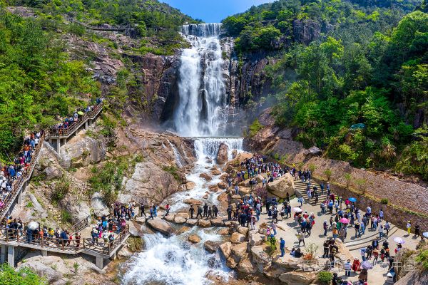下午可以开始游览石梁飞瀑,这是天台山景区的主要景点之一。石梁飞瀑总面积约6.5平方公里,属于花岗岩地貌,风景奇特,被誉为“天下第一奇观”。