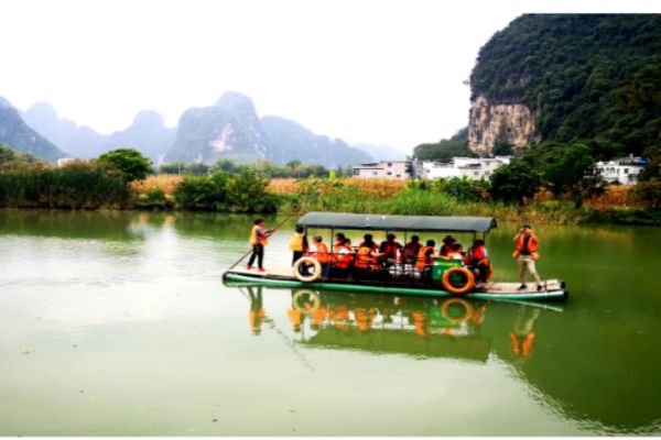 明仕景区,位于广西壮族自治区崇左市大新县堪圩乡明仕村,是国家4A级景区,素有小桂林之称。区内山清水秀,翠竹绕岸,农舍点缀,独木桥横,稻穗摇曳,农夫荷锄,牧童戏水,极富南国田园气息。