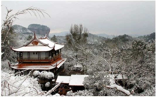 8.武夷山有时下雪,若下了一夜的武夷山景区银装素裹,成了白色的世界。