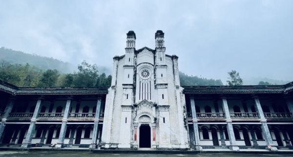 白鹿上书院由法国传教士在1908年修建而成,用于培养中国天主教神职人员。1949年以后,上书院基本不再发挥宗教场所功能。在汶川大地震中,这座百年遗迹在短短八秒钟内全面坍塌,瓦砾成山,木柱交错,通体白色的石质大门断裂成梯形,粗壮的半圆柱形门柱只有底部尚存。规划将于原址重建。