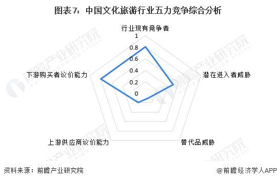 运用波特的“五力”模型,对文化旅游行业的竞争环境分析中,对各方面的竞争情况进行量化,1代表最大,0代表最小,文化旅游行业的竞争情况如下图所示:
