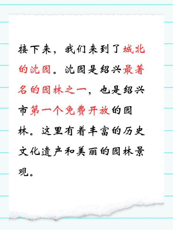 接下来,我们来到了城北的沈园。沈园是绍兴最著名的园林之一,也是绍兴市第一个免费开放的园林。这里有着丰富的历史文化遗产和美丽的园林景观,让你仿佛置身于古代的园林之中。