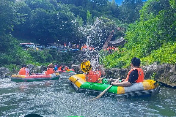 4、六股河漂流:关外第一漂漂流项目,蓄水12万立方米。整个蓄水区形成一个葫芦形状,因此称为“葫芦潭”。湖面波光粼粼,碧波荡漾,西岸上的鲜花在水中形成倒影,鱼儿在花影间穿梭;东岸连绵起伏的山峦,在水中形成明暗分明的曲线,游船在湖中穿行,形成一幅北方特色的“北国水乡图”。夜游六股河,十里歌声,两岸灯火。