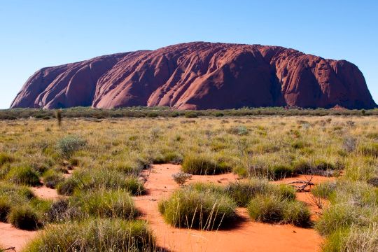 3. 乌鲁鲁(艾尔斯岩):位于澳大利亚中部,是一座巨大的砂岩岩石。它是阿纳古人的圣地,也是澳大利亚最重要的象征之一。游客可以在日出和日落时分欣赏到岩石的壮丽景色。