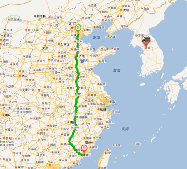 天津到厦门自驾游途经福建省、江西省、安徽省、江苏省、山东省、河北省。