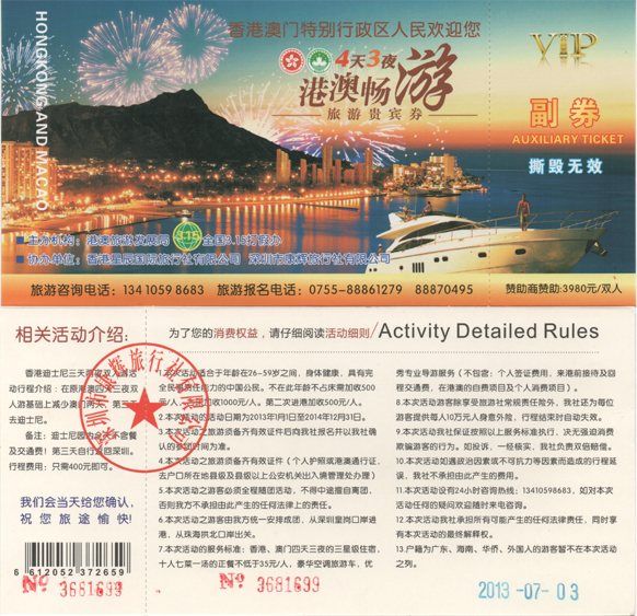 港澳4天3夜双人游贵宾劵(旅游贵宾券双人游)
