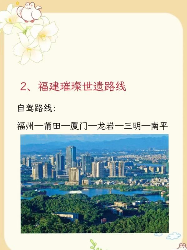 福建璀璨世遗路线是福建经典自驾路线,全程约1100公里。一路串联福建著名的世界文化遗产武夷山,泰宁丹霞、福建土楼、鼓浪屿等。