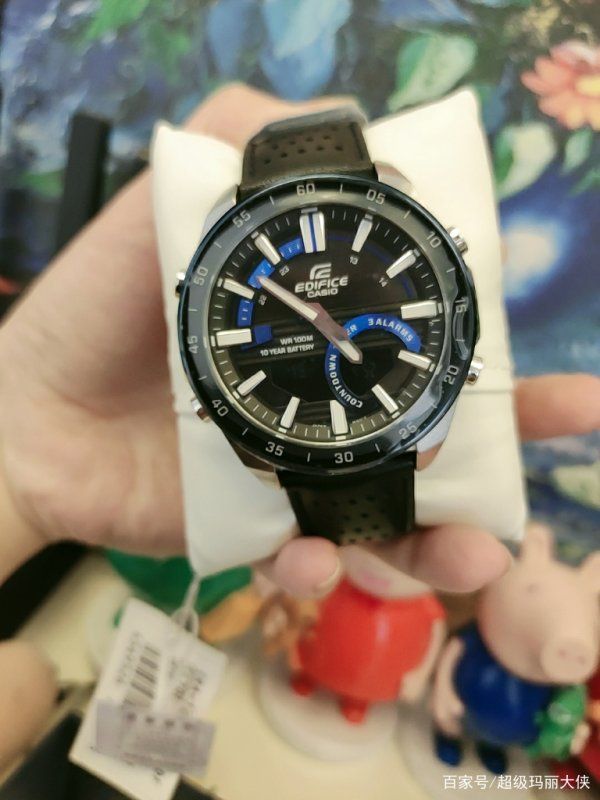 再来说说这款手表的材质。表镜是矿物玻璃材质,黑底红色和黑底棕色那两款是金属不锈钢表带,黑底蓝色也就是我这款表带是气质的,很高档的皮质。对了特别要补充的是电池可用十年,我想这应该是最大优势了吧。这款手表防震、防水功能增添使用灵活性,色彩绚丽。不论是前侧的保护构造,还是侧面的按键设计,都可以达到防震效果。很酷,又为有个性的、崇尚休闲自由的男士提供创新功能和时尚体验。