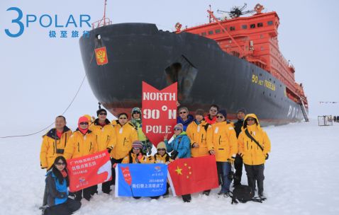极至旅行与团友在北极点90度合照