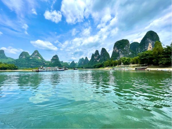 俗话说得好桂林山水甲天下,在这样的美景中,乘坐一艘竹筏泛舟游湖,真的很是惬意。