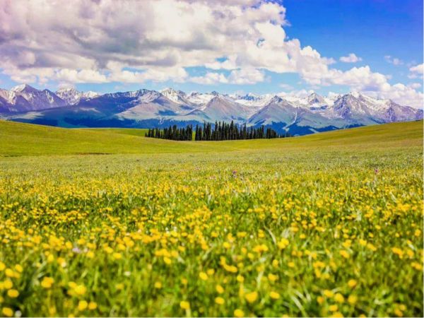 新疆旅行不得错过伊犁,那里有新源的杏花,昭苏的油菜花,唐布拉的天山红花,喀拉峻草原上的金莲花,霍城的薰衣草,特克斯河谷的向日葵,以及没那么有名但同样出众的玫瑰花、芍药花、郁金香、野苹果花和野酸梅花。