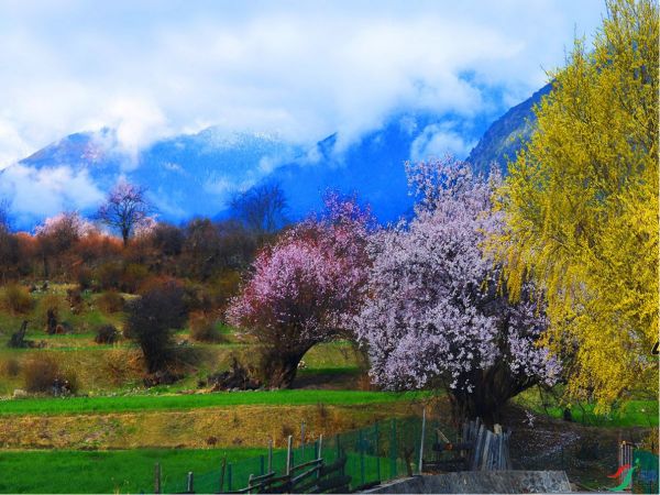 被称为“西藏的江南”,能诠释这一称呼的莫过于三月随处可见的桃花:河谷中、田野里、公路边,但辨识度最高的莫过于南迦巴瓦峰雪山之下的桃花林。