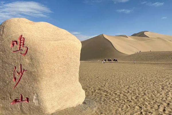 鸣沙山+月牙泉是去敦煌旅游最佳线路之一。在鸣沙山的南麓,有一个美丽的湖泊——月牙泉。游客可以在沙漠中骑骆驼、滑沙、滑板等,感受独特的沙漠风情。