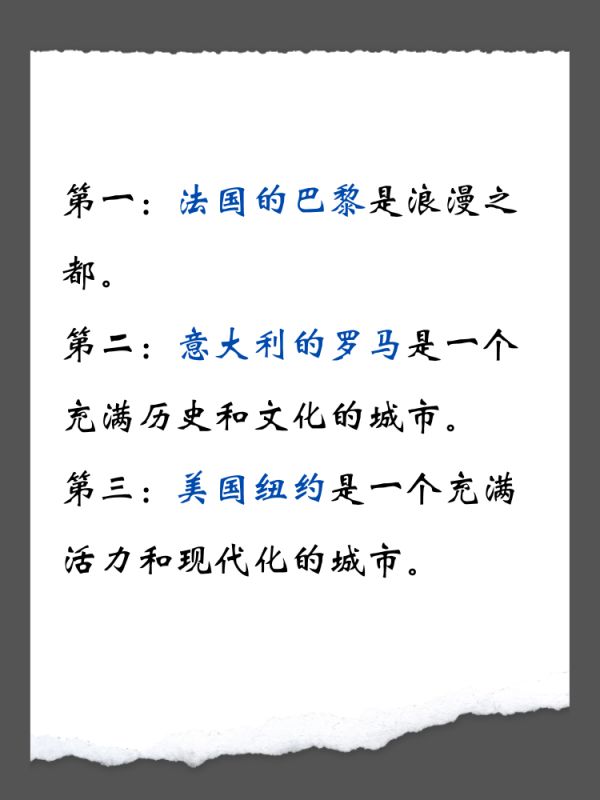 第三名是美国纽约。纽约是一个充满活力和现代化的城市,有着许多著名的景点,比如自由女神像、帝国大厦和中央公园。如果你喜欢现代都市的感觉,纽约绝对是一个不错的选择。