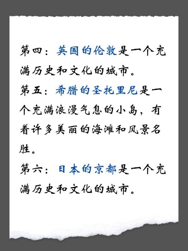 第四名是英国的伦敦。伦敦是一个充满历史和文化的城市,有着许多著名的景点,比如大本钟、伦敦塔桥和白金汉宫。如果你对英国的历史和文化感兴趣,伦敦绝对是一个不容错过的地方。