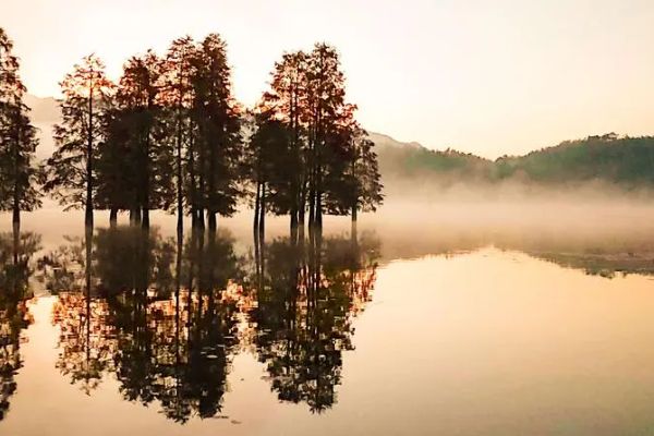 金圣湖,因湖中每天产出的鱼具有“上升的黄金”价值而得名,曾被称为金圣湖,也被称为神泥湖。位于东至、贵池,总面积3421公顷。湖水清澈如镜,湖边有雾蒙蒙的树。这是一个美丽的江南水乡。每年冬天,金圣湖都会成为观鸟、观鹤胜地,吸引无数游客在此拍照。鹤住在城市上,城市以鹤为荣。每年11月至次年1月,定为东至县观鹤节。