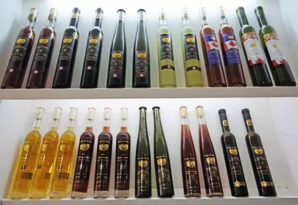 加拿大冰酒被誉为国酒。冰酒是加拿大独特且稀有的特产,堪称葡萄酒中之极品。通常约 8 公斤葡萄才能酿造出 1 瓶375ml 之冰酒。冰酒的品种主要有冰白葡萄酒和冰红葡萄酒。其中冰白葡萄酒颜色呈透明金黄色,素有“液体黄金”之美称;散发出蜂蜜和水果等香味;口感甘甜醇厚,清新可口,是重视健康之人士的绿色食品。