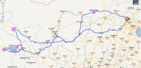 2、北京-石家庄-郑州-西安-宝鸡-天水-兰州-西宁-日月山-青海湖