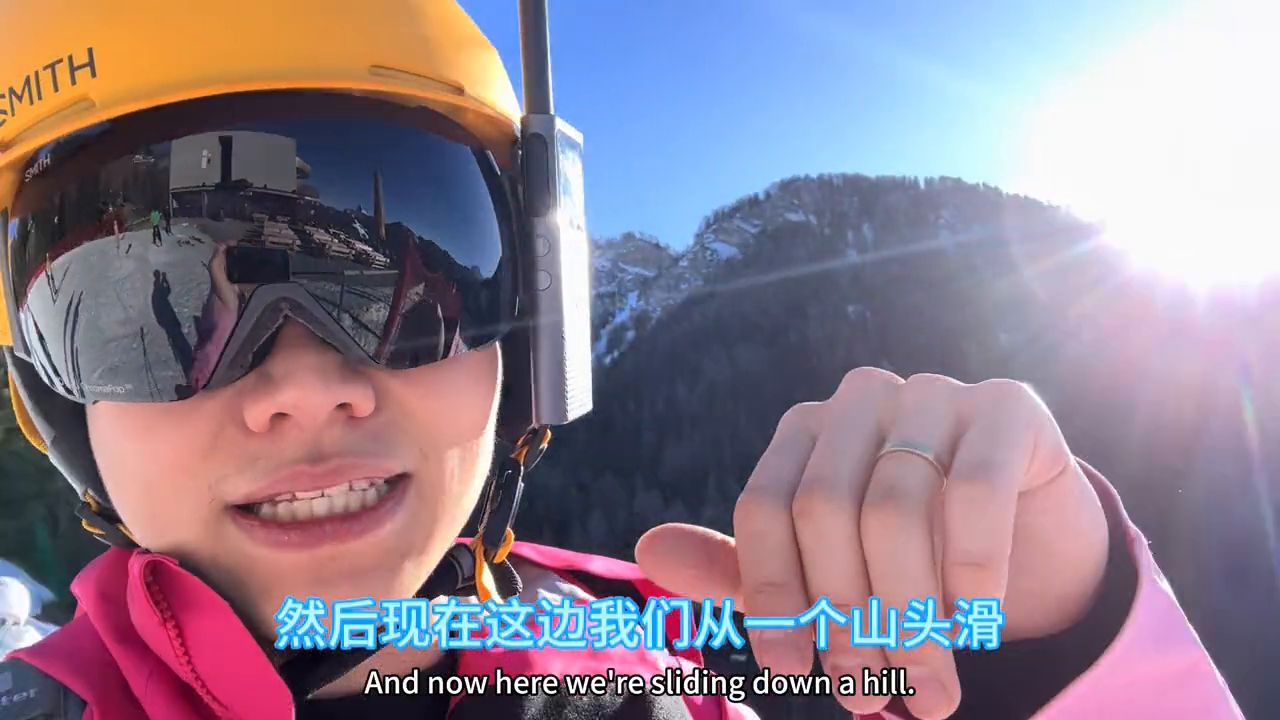 它关门之前,你可以绕好几个山头一直滑,然后现在这边从一个山头滑,滑到另一个山头,我想去那边,那边其实是算另一个雪场的,一个上头的,也是可以滑上去后再滑下来,然后再慢慢坐缆车再回到这个山头去,所以这整体上还是很舒服的。