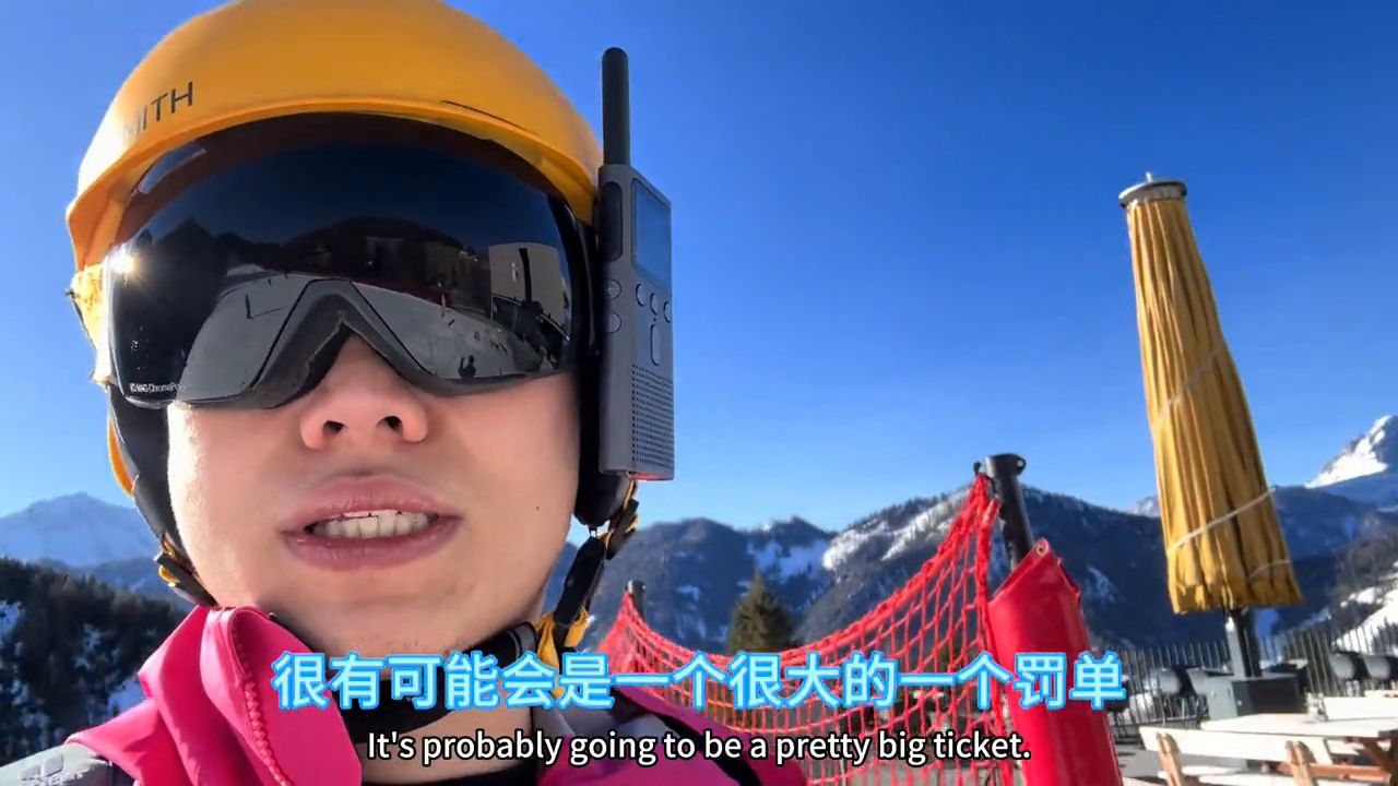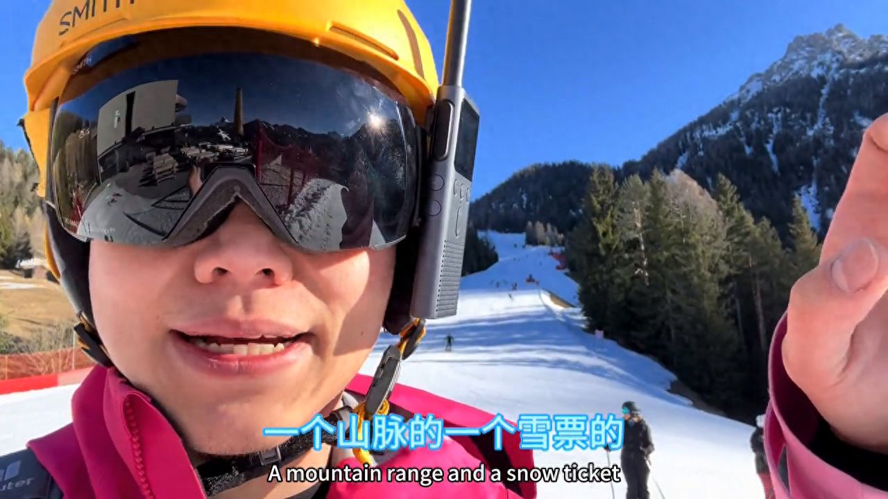 所以说这价格贵不贵?我感觉不太贵,因为北大湖、松花湖什么的也是这个价格,然后这个75欧的就是75欧元的。这个雪票在多米地这边,整个上面可以是每个雪山一直滑的,只要你的技术够快,你的时间能赶得上就赶得上。