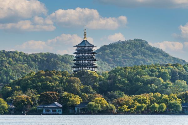 西湖是中国最受欢迎的旅游胜地之一,以其美丽的湖光山色和丰富的文化遗产而著名。游客可以乘船游览湖泊,欣赏到别具一格的湖景和古建筑,还可以品尝到西湖龙井茶和杭州菜。