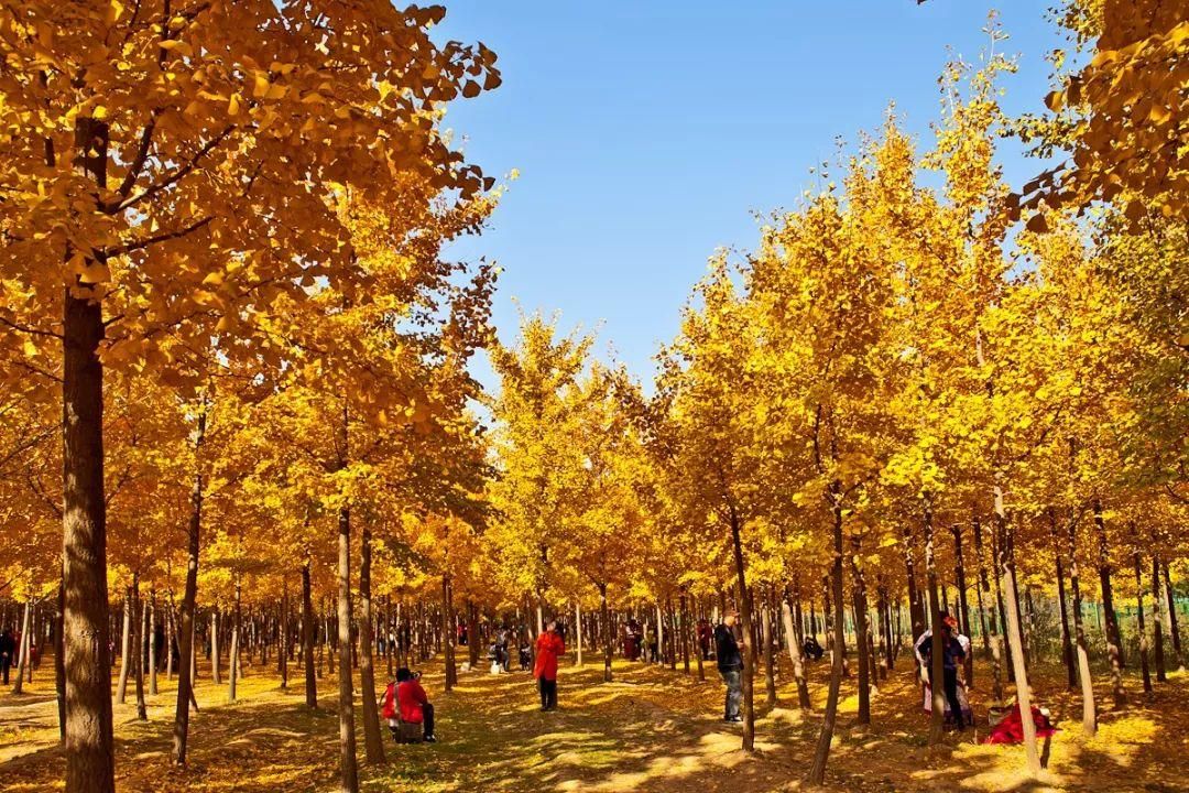 每年秋天,公园里的百余棵银杏树渐渐变黄,阳光明媚的天气,大家都来游玩拍照。