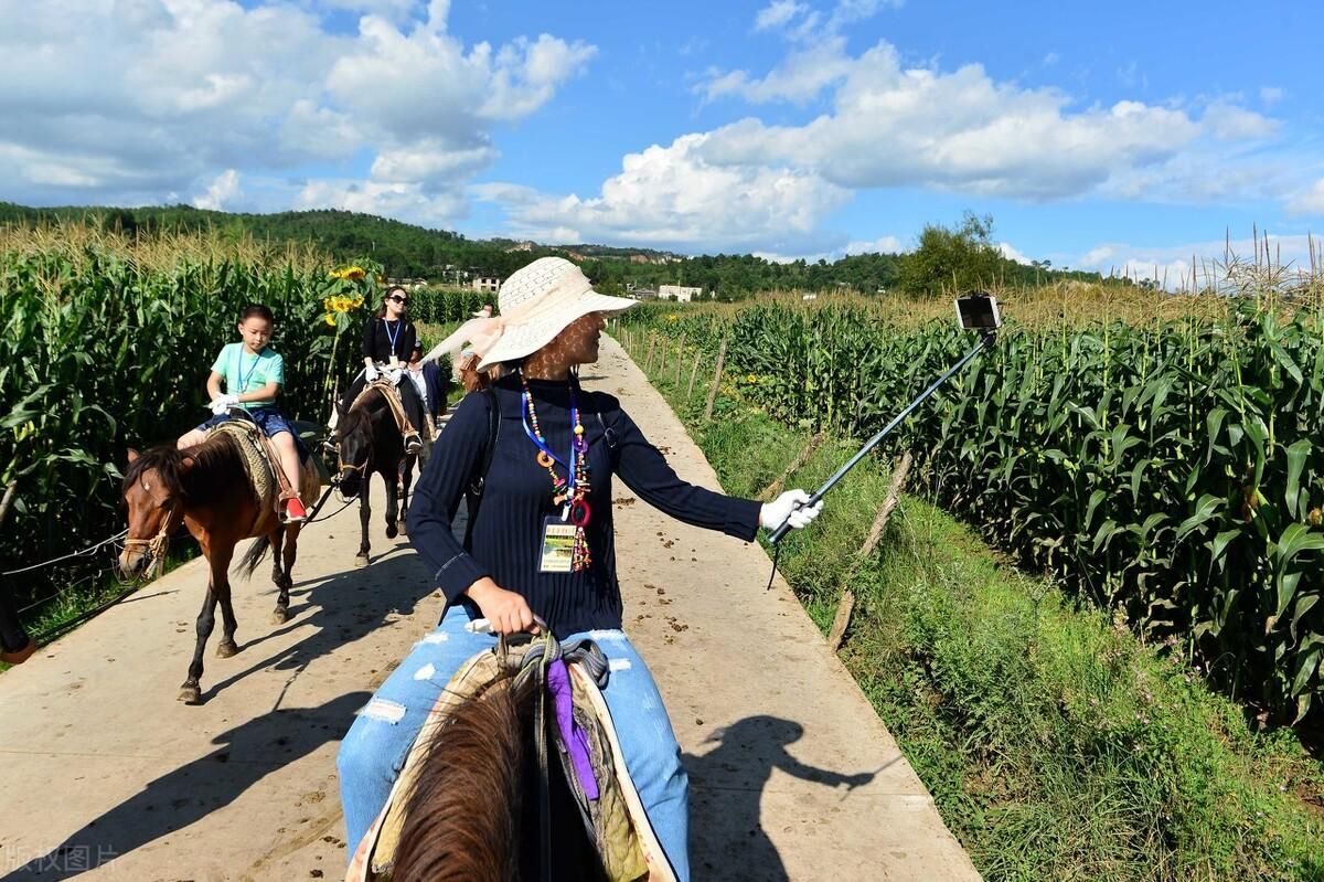 第二天 出发去拉市海游玩 骑马真的挺有乐趣的 还可以在山上欣赏到美丽的自然风光 中午吃一顿土鸡火锅 午饭后在庭院园区里拍拍照 吃吃水果 下午有司机送你去看一场丽江千古情演出 演出结束接你回丽江古城