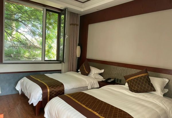 云巢宾馆:订的是1.2米*2的双床房,一家四口正好。有独立卫浴。刚到宾馆,远超预期,在这么高的山顶,有干净整洁特色的酒店。位置就在南天门附近,非常方便,早3:50有导游带队去小众观日台。