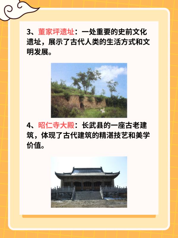 3、长武县博物馆:博物馆位于昭仁寺内,是一个综合性的场馆,馆内一共有6个展室,保存有很多重要的文物。