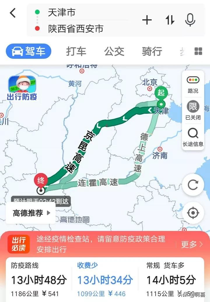天津自驾去西安旅游,基本高速主路线距离1099公里,车程13小时34分,过路费466元。如果早上比较早出发,当天晚上就可以到西安。