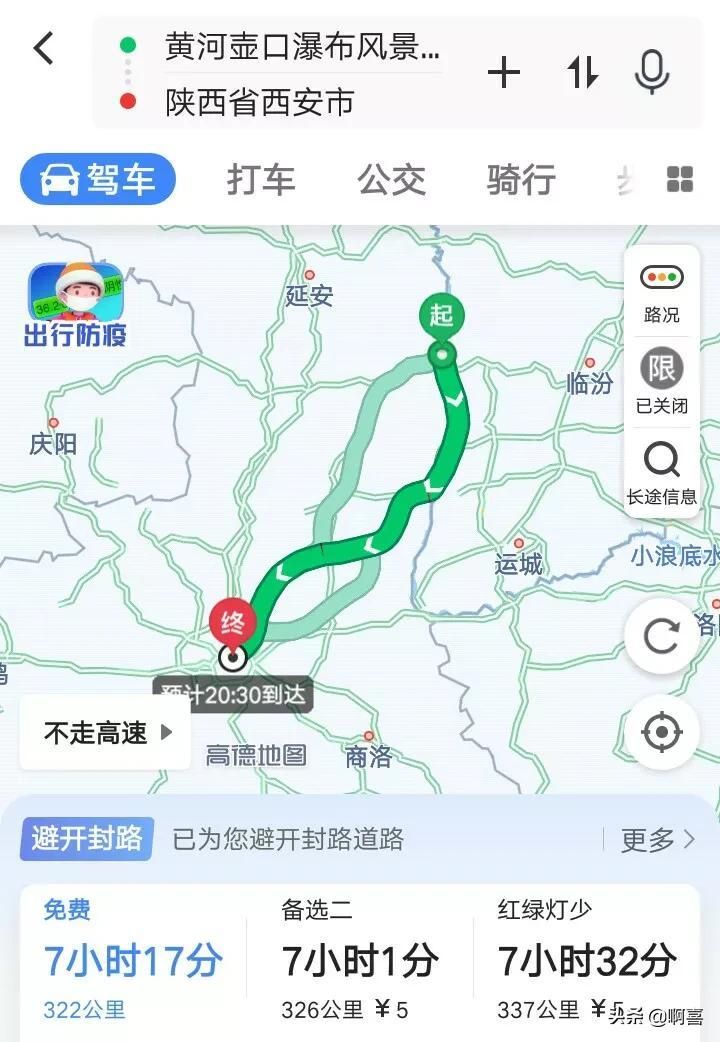 路程321公里,车程4小时32分,过路费145元。云台山景区门票120元/人。