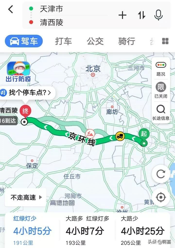 早上天津出发,开车走高速3小时左右,不走高速4小时左右,路程191公里。